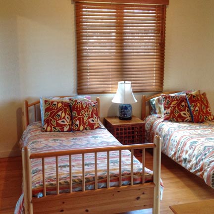 The guest wing has two bedrooms, one with twin beds, the other with king bed, plus a guest bath with tub/shower and laundry facilities.