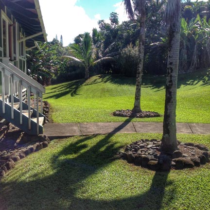 The beautiful landscaping at Hale Kulapono provides perfect surroundings for a serene and quiet visit. Our banana patch usually always has fruit available and there are avocados, passion fruit, citrus and even coffee beans!